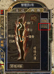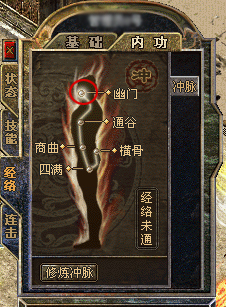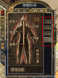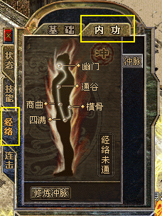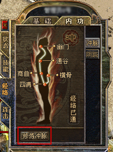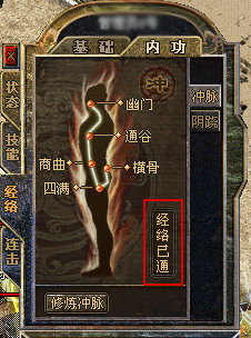 【学会更多的连击】 第一步:每打通第一条经络后,内功界面中将出现一条新的经络。